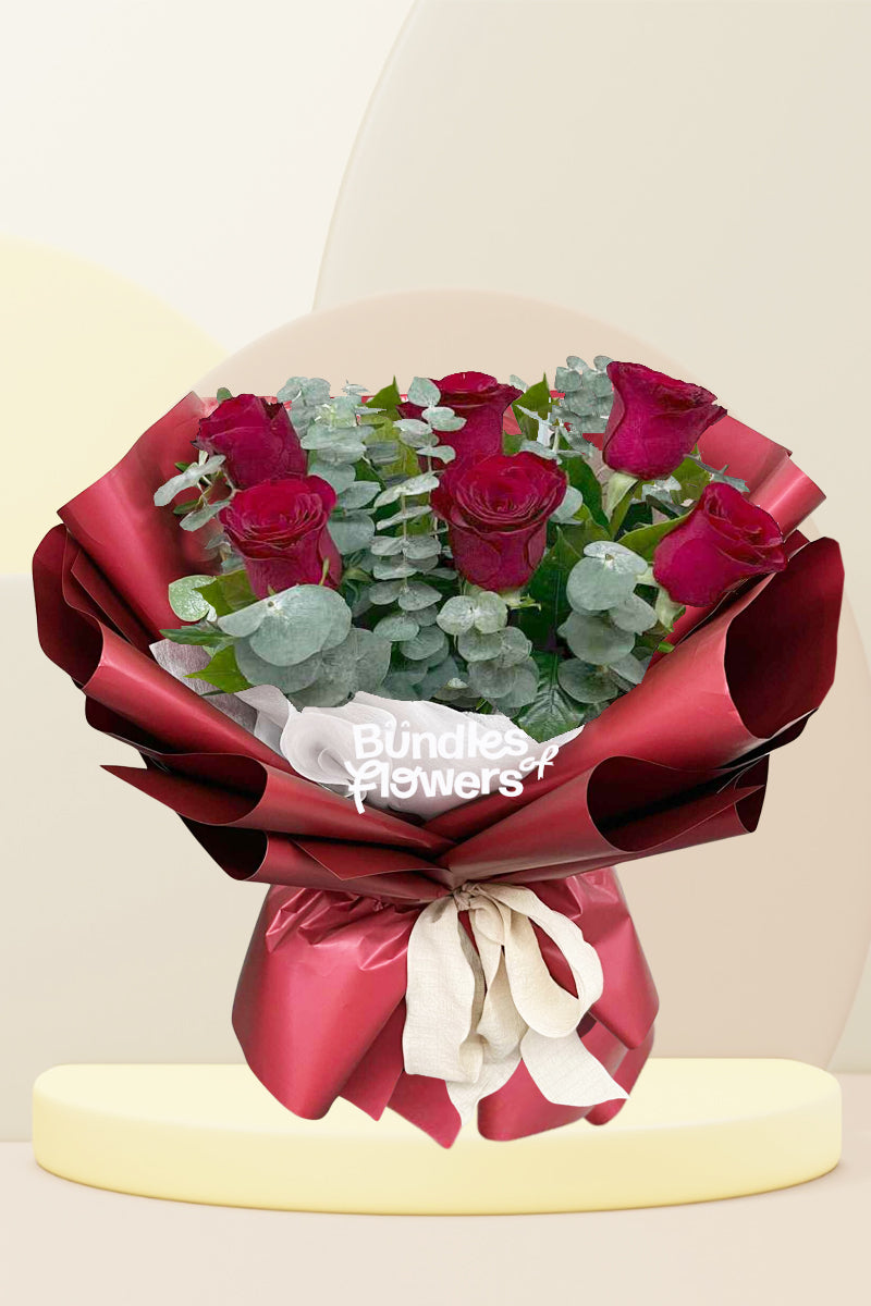Declare your affection with this elegant arrangement of six radiant red roses—nature's ultimate symbol of romance. Each bloom is carefully positioned to capture the intensity of your feelings, creating a gift that transcends words. Perfect for anniversaries, proposals, or any moment when you want to remind someone they're irreplaceable. This classic bouquet doesn't just sit in a vase; it becomes a lasting testament to the depth of your love.