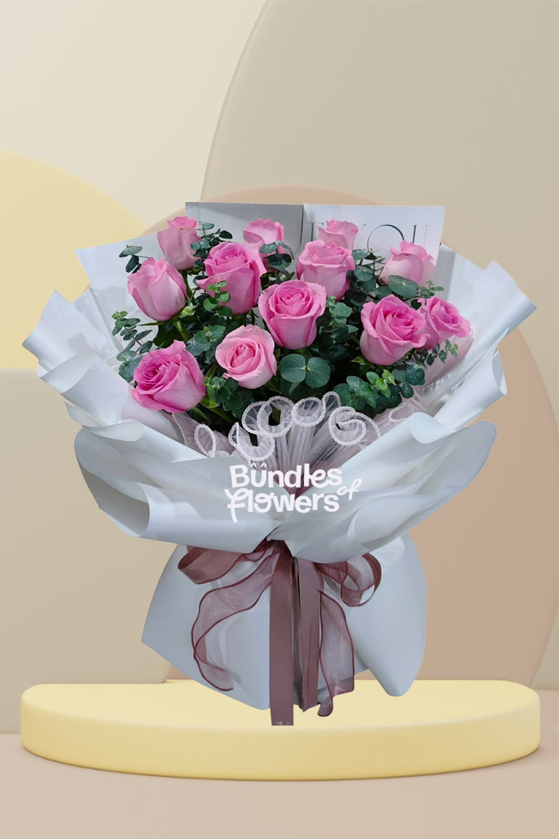 Elevate your gifting with our Sweet Bloom bouquet—twelve exquisite pink roses paired with delicate gypsophila stems that add an ethereal touch. This romantic arrangement captures hearts with its soft, feminine charm, making it an unforgettable choice for anniversaries, celebrations, or simply expressing your deepest affection.