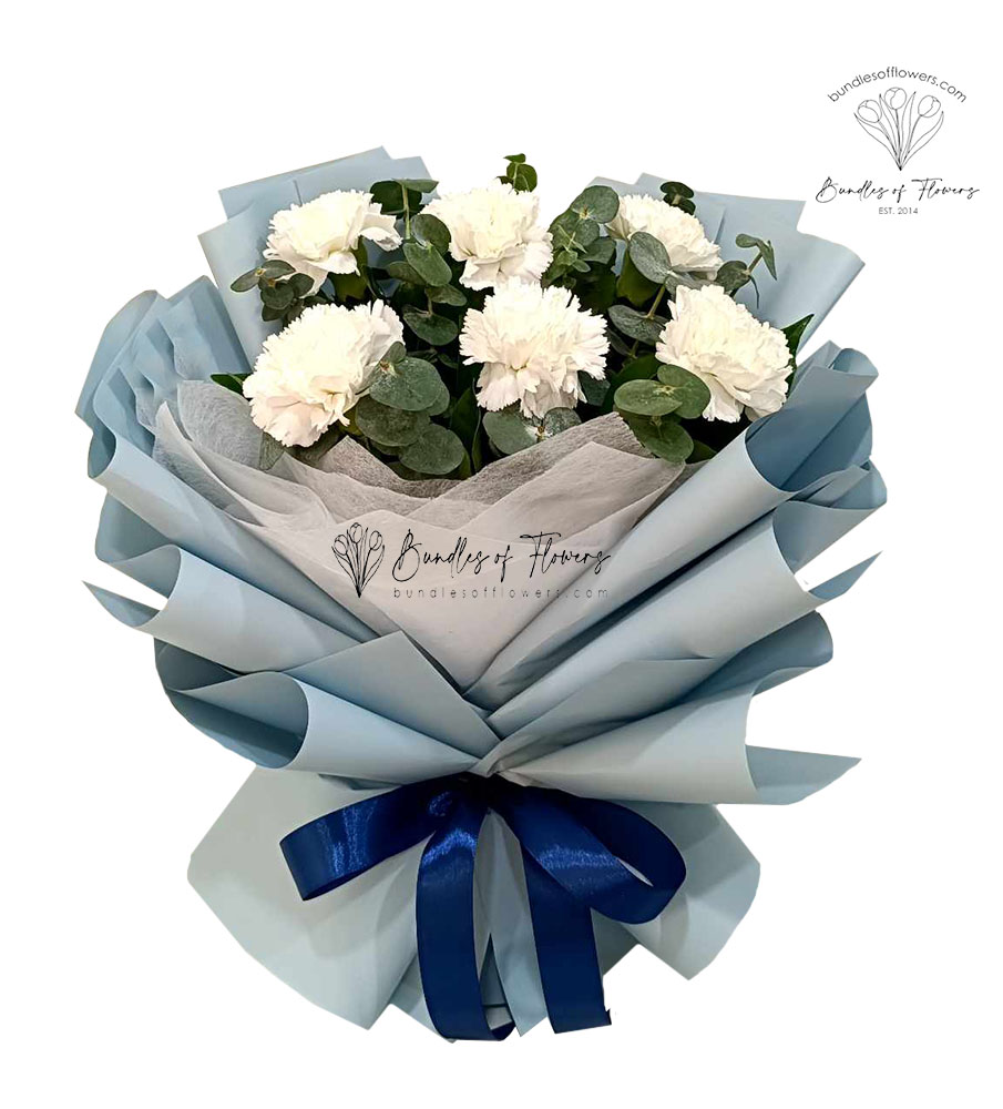 6 pcs white carnations arranged in a bouquet.Note: Reservation is required. .....
